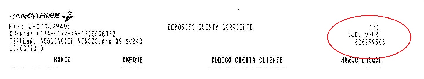 - Importante: el SERIAL es el que aparece en la esquina superior derecha del comprobante que imprime la máquina (el Bancaribe NO utiliza planillas de depósito, sino que son generadas directamente en la taquilla). Favor ver imagen ilustrativa haciendo clic aquí.